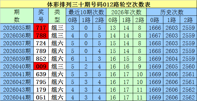 开奖回顾:排列三第2026044期奖号为:051,号码012路比为1:1:1。