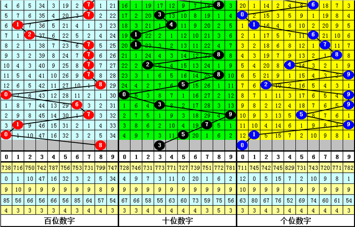 断档分析:上期奖号012路号码全部出现,在最近10期开奖中012路号码分别断档4次、3次、4次,其中0路、2断档次数较多,1路断档次数较少,本期注意1路号码断档,防0路号码转热。