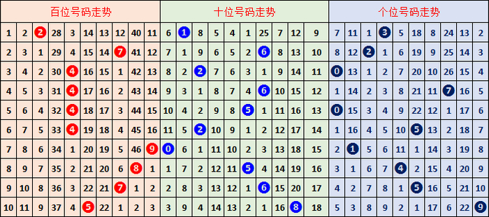 012路分析:上期开出012路比为1:0:2,012路号码走势较前一期未发生变化,最近十期012路总比值较前一期未发生变化,比值是9:10:11。0路号码走势较冷,1路号码走势较温,2路号码走势较热,本期预测0路号码走势上升,推荐012路比值2:0:1